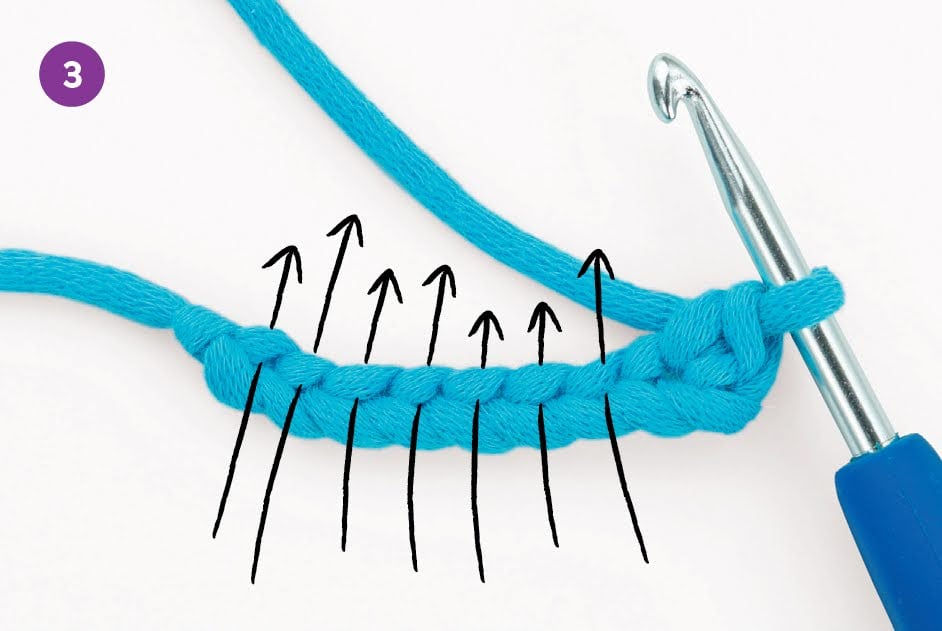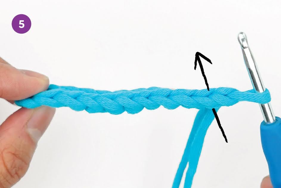 3. Crochet all stitches of this second row through the back loops of the foundation chain.