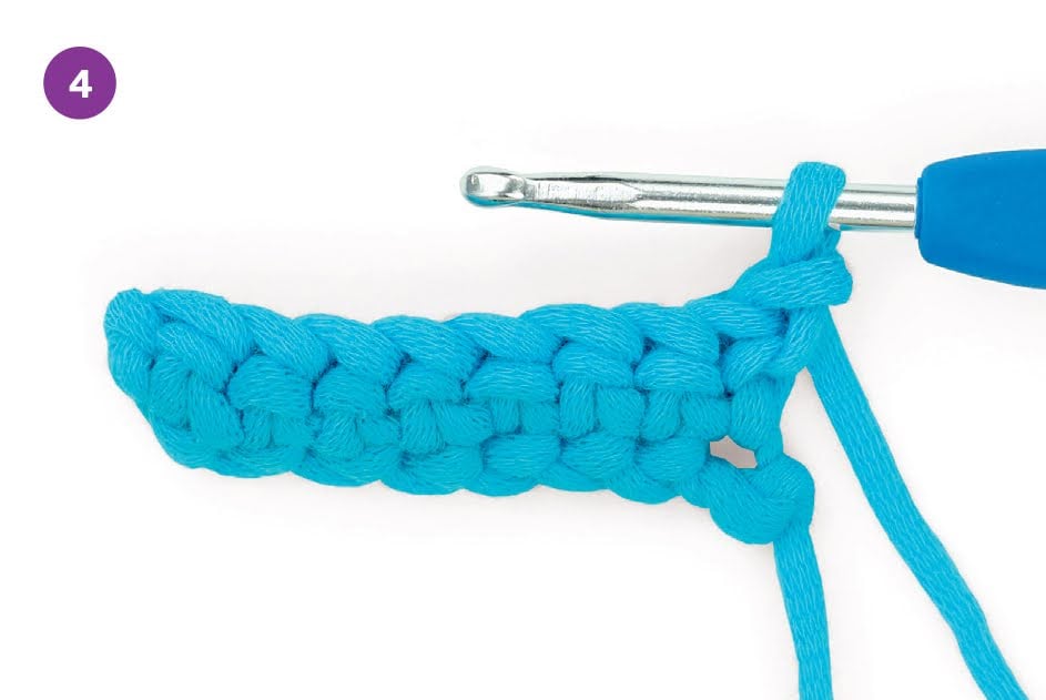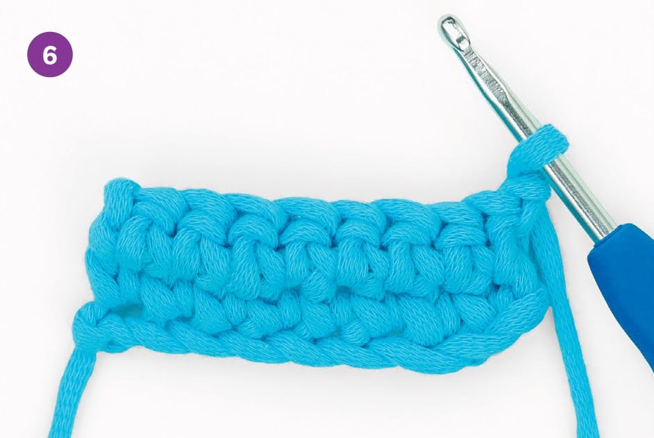 4. When you reach the end of the row, ch 1 and turn.