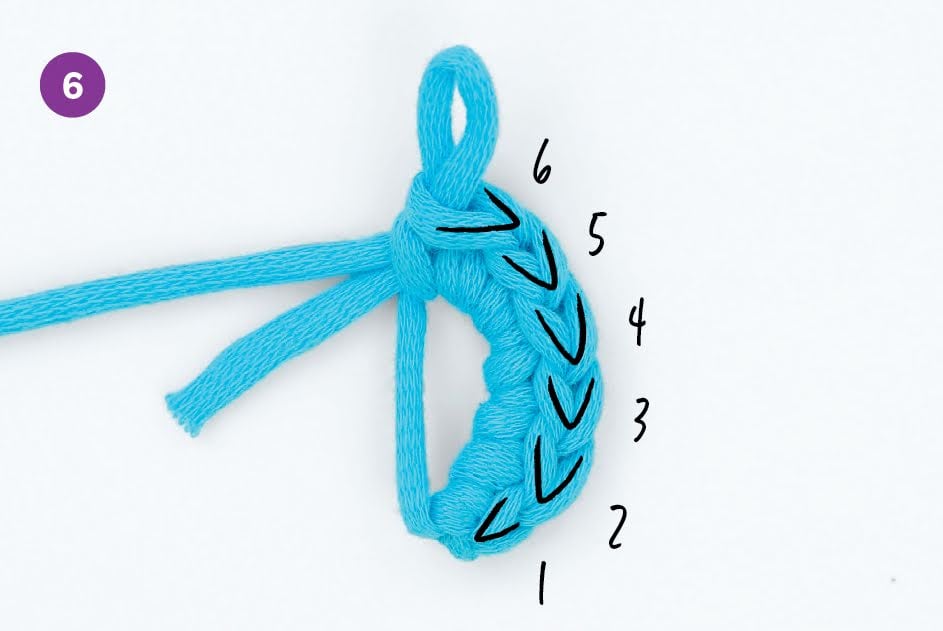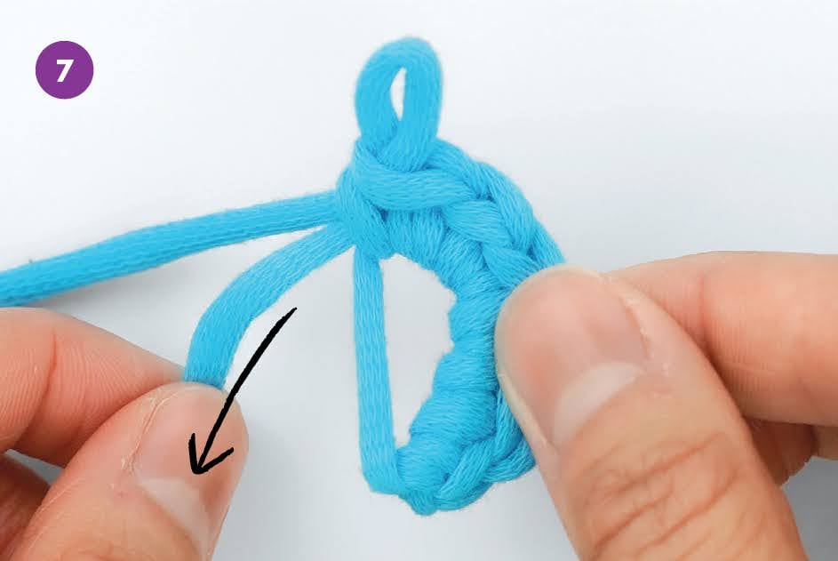 6. Repeat steps 2–5 until you have as many sc as the pattern calls for.