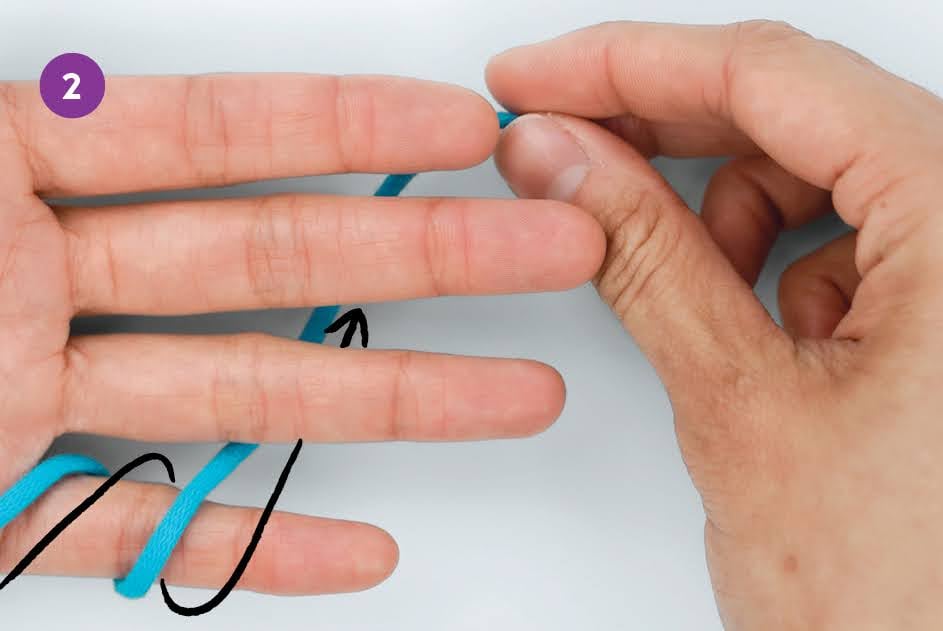 2. Wrap the working yarn once around your pinky, so that the yarn tail ends up behind your hand.