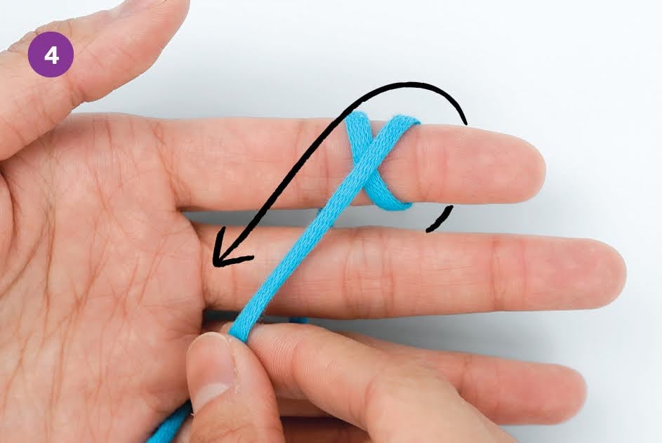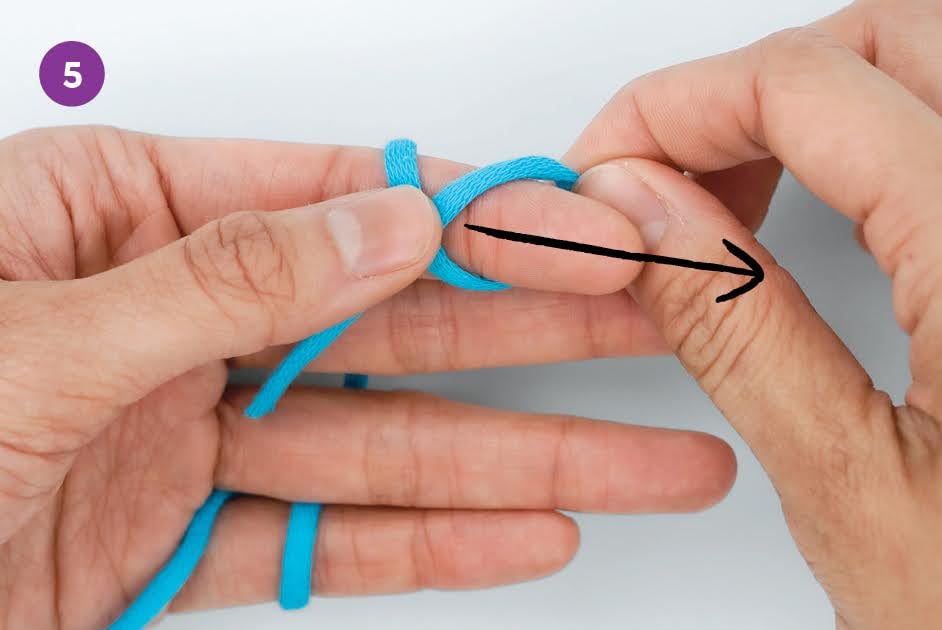 5. Hold onto the intersection with your left thumb and slide the loop off your finger using your right hand.