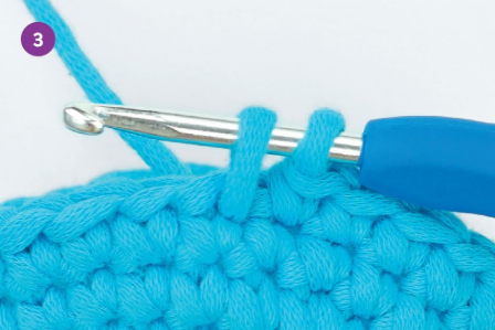 1. Insert the hook under the top loops of the next